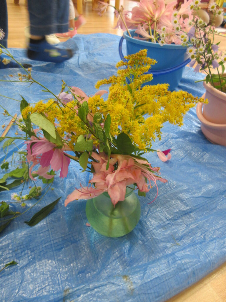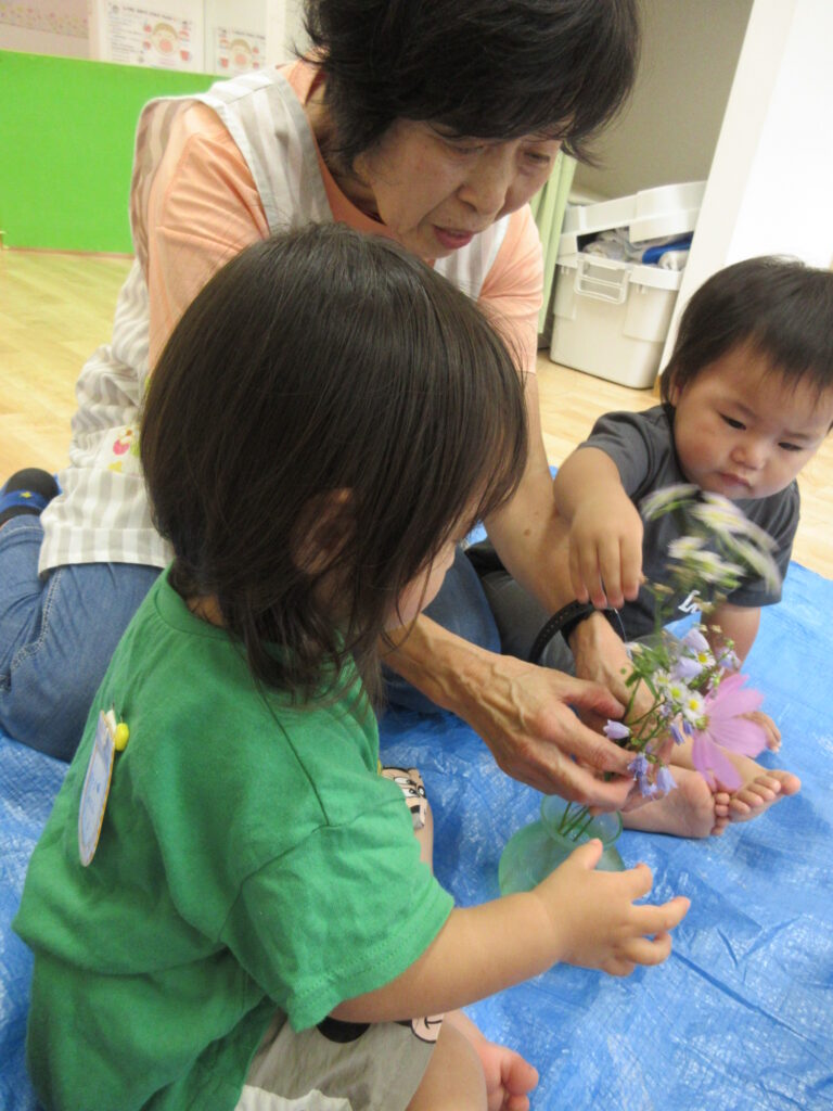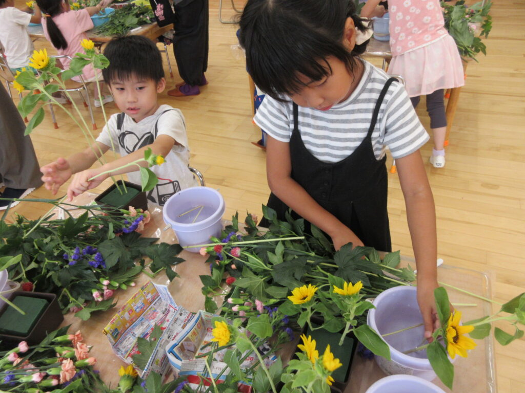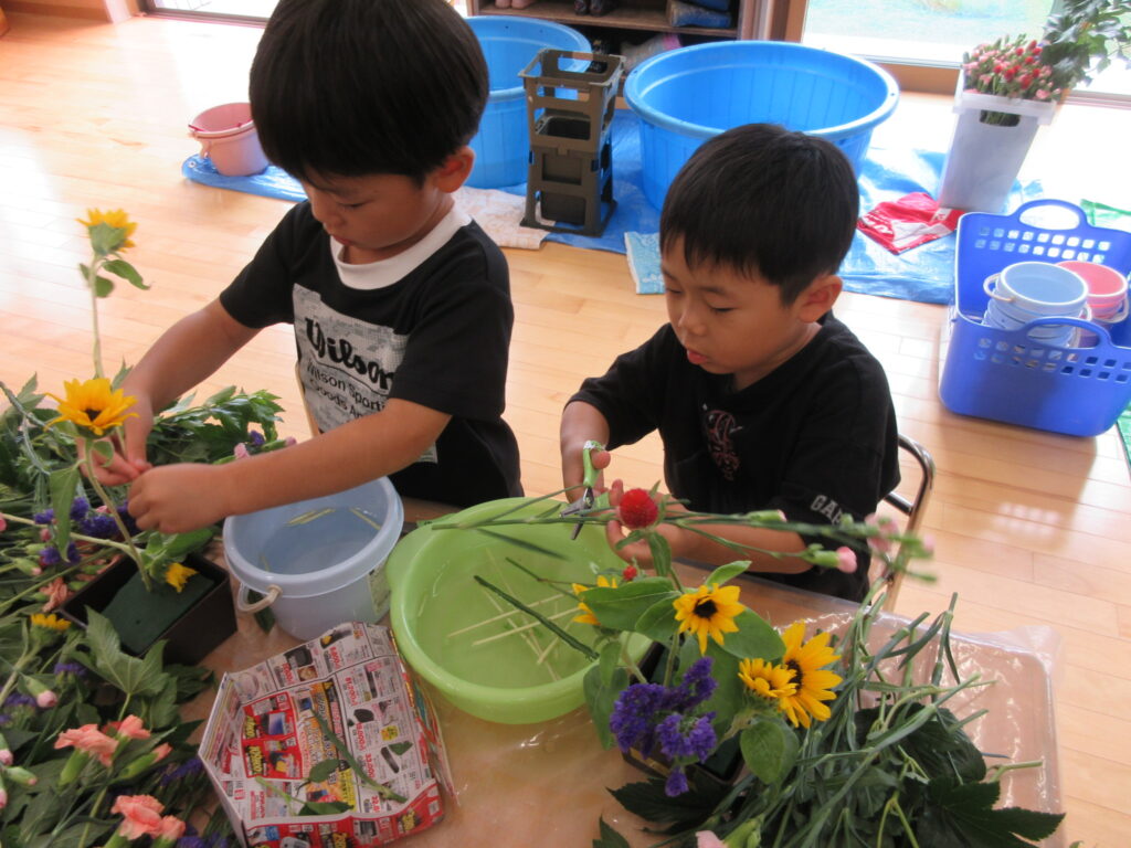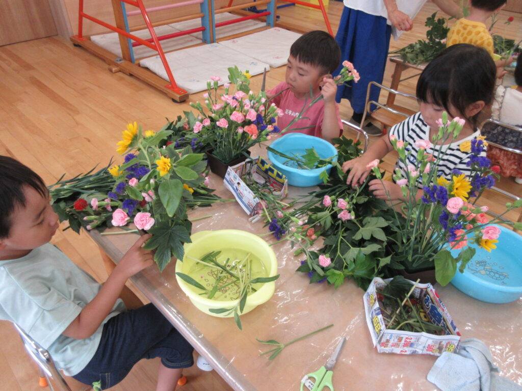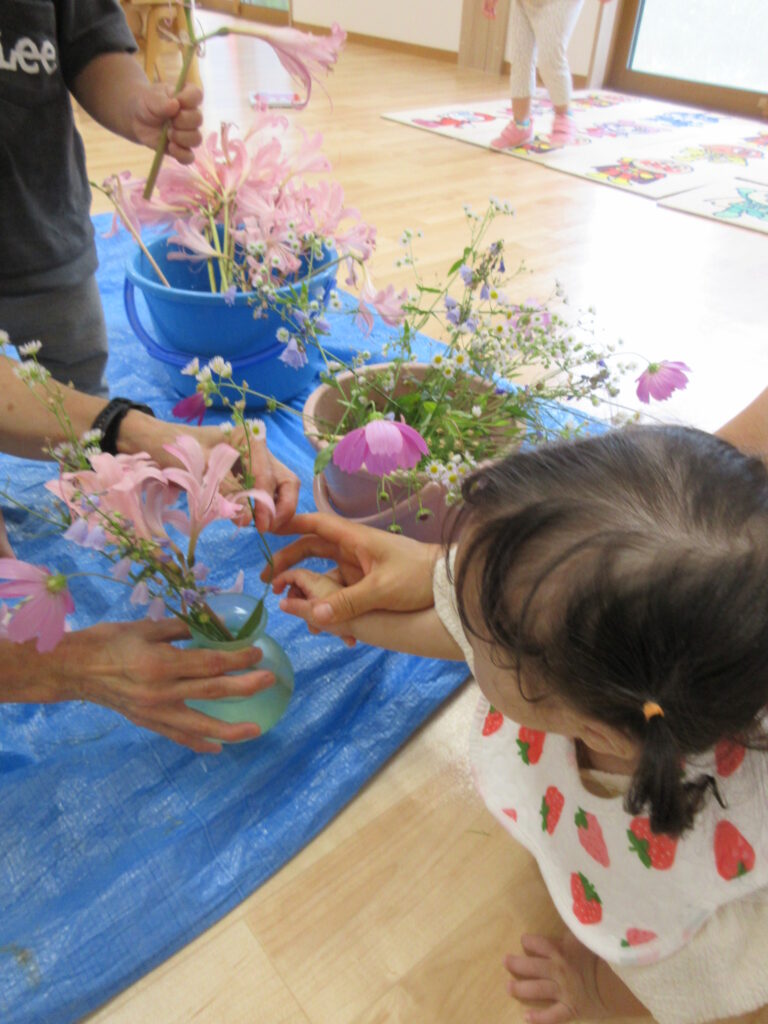 今週のつぼみさん!生け花教室の前日、つぼみ組のお友だちもクラスに飾るお花を生けていました!みんな色んなお花を選んで真剣ですね♪