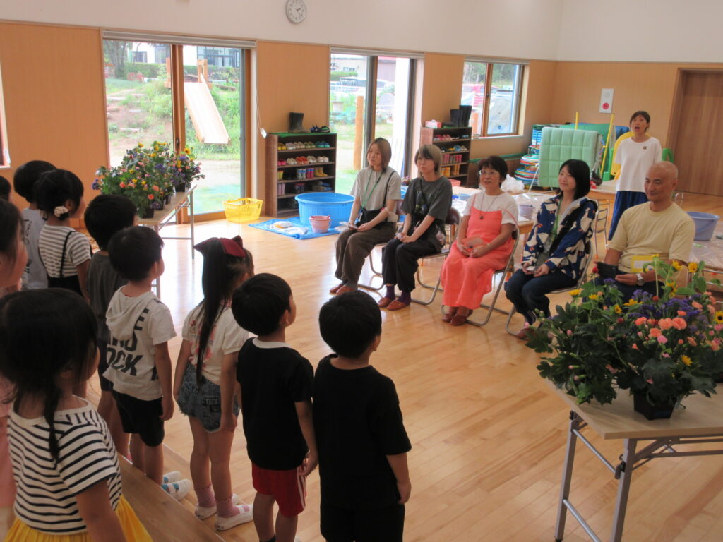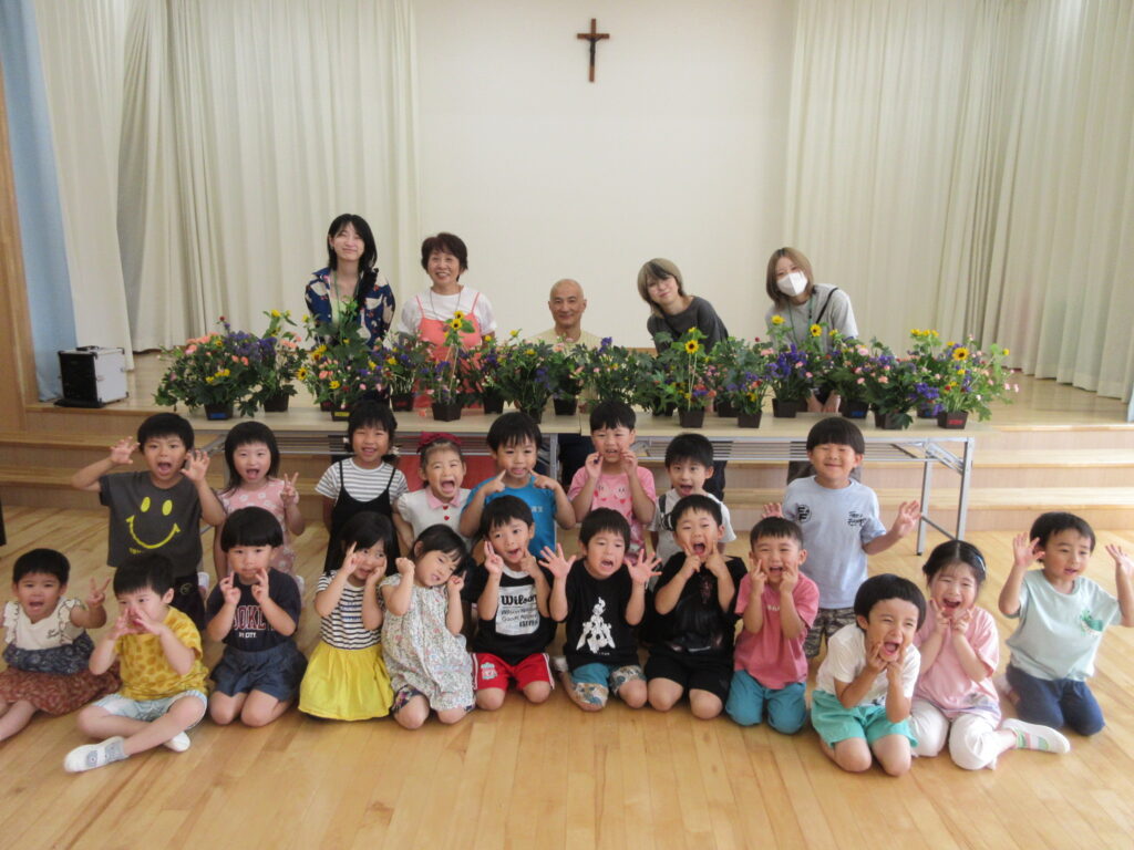 年に一回マリア幼稚園のみんなが心待ちにしている教室、花育教室が今年度も開催されました。今年度も直子先生、黒澤さん、そして黒澤さんのようにお花の問屋さんになりたてのお弟子さんたち!が来園され素敵な時間を過ごしました。最後には子どもたちから歌のプレゼントもさせていただきみなさんとても喜んでくださりました。子どもたち一人一人がお花と向き合う姿、姿勢。とても素敵でしたよ!