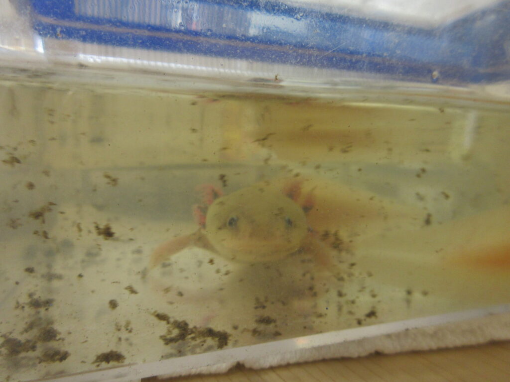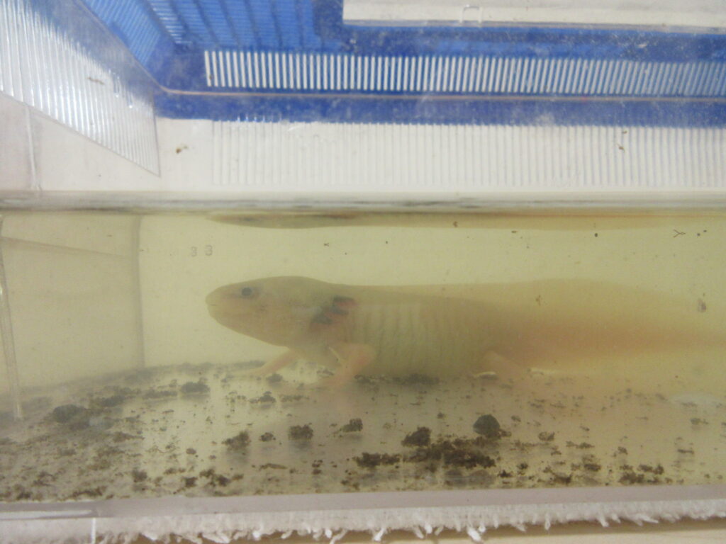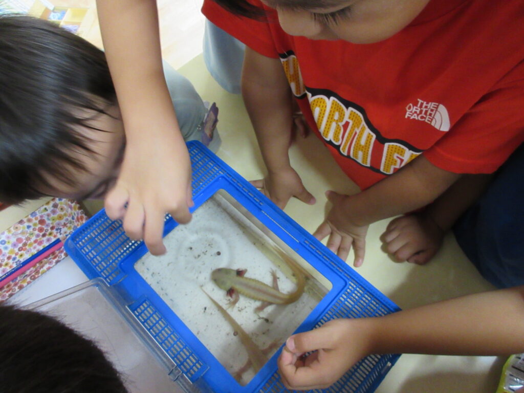 幼稚園にウーパールーパーさんがやってきました。お迎えさんからちょっとだけ遊びに来てくれましたよ~